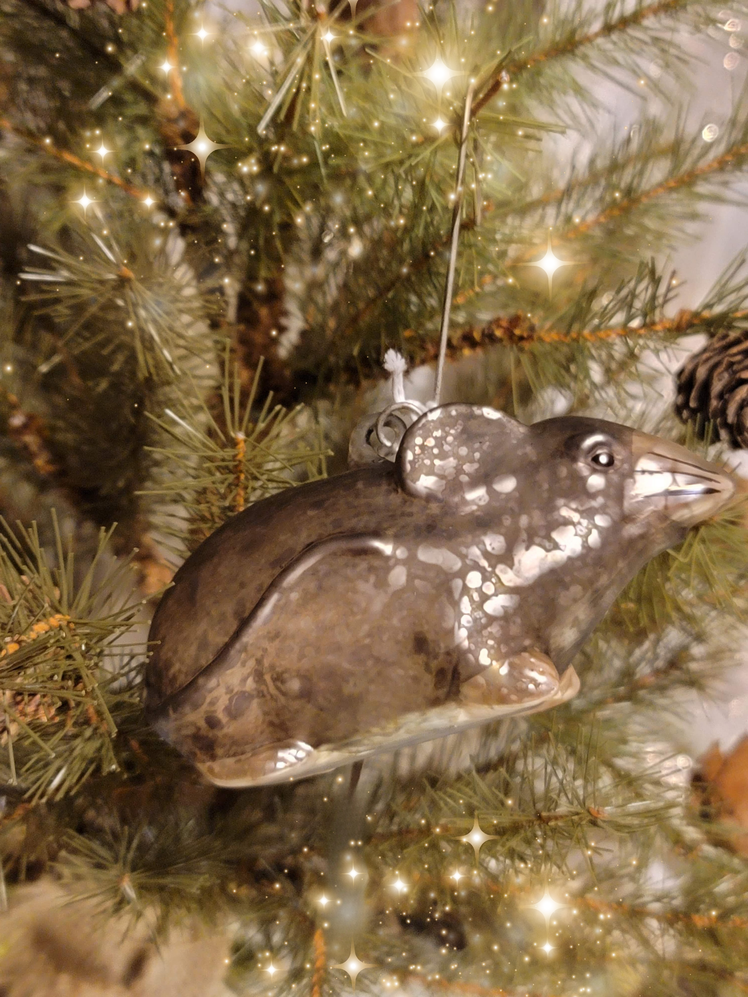 Primitive Christmas Style Whimsy Mercury Glass Silver Mouse Ornament