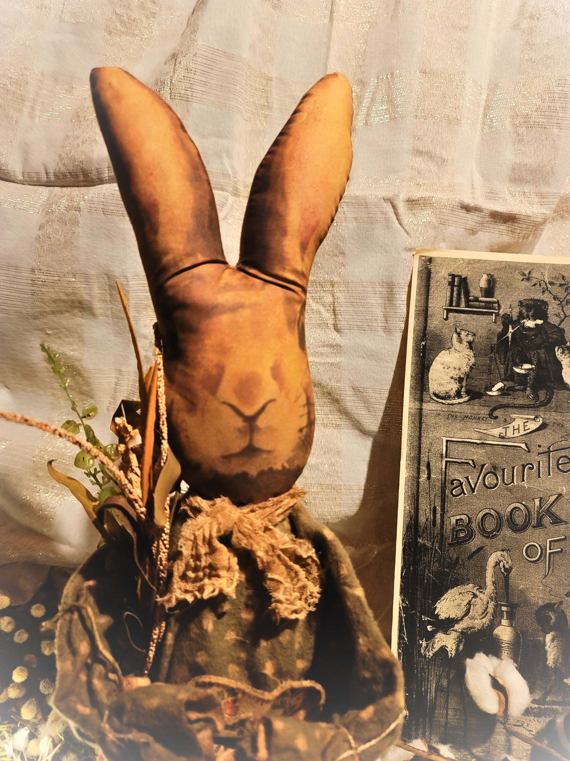 Primitive Vintage Style Stuffed Bunny Rabbit Figurine