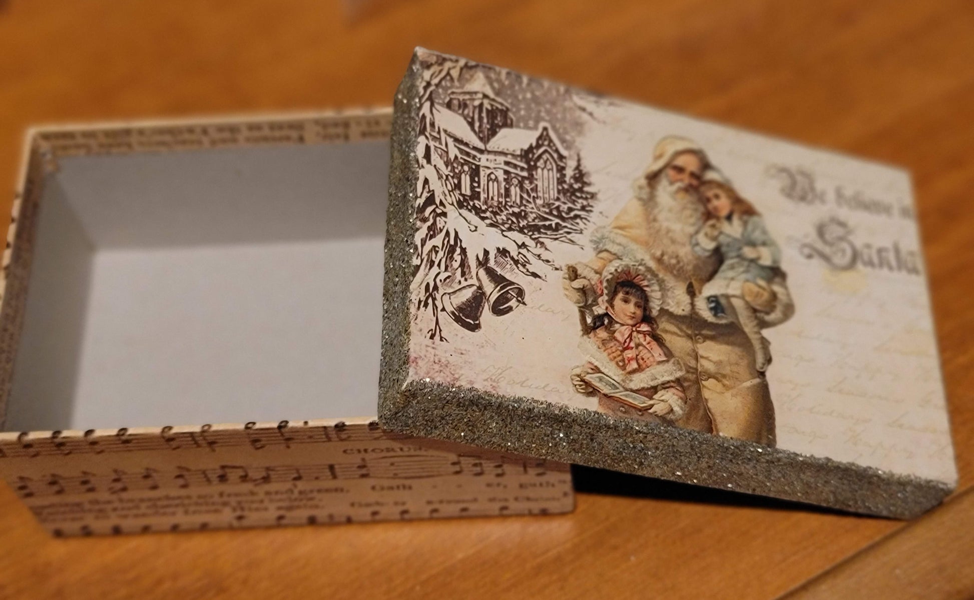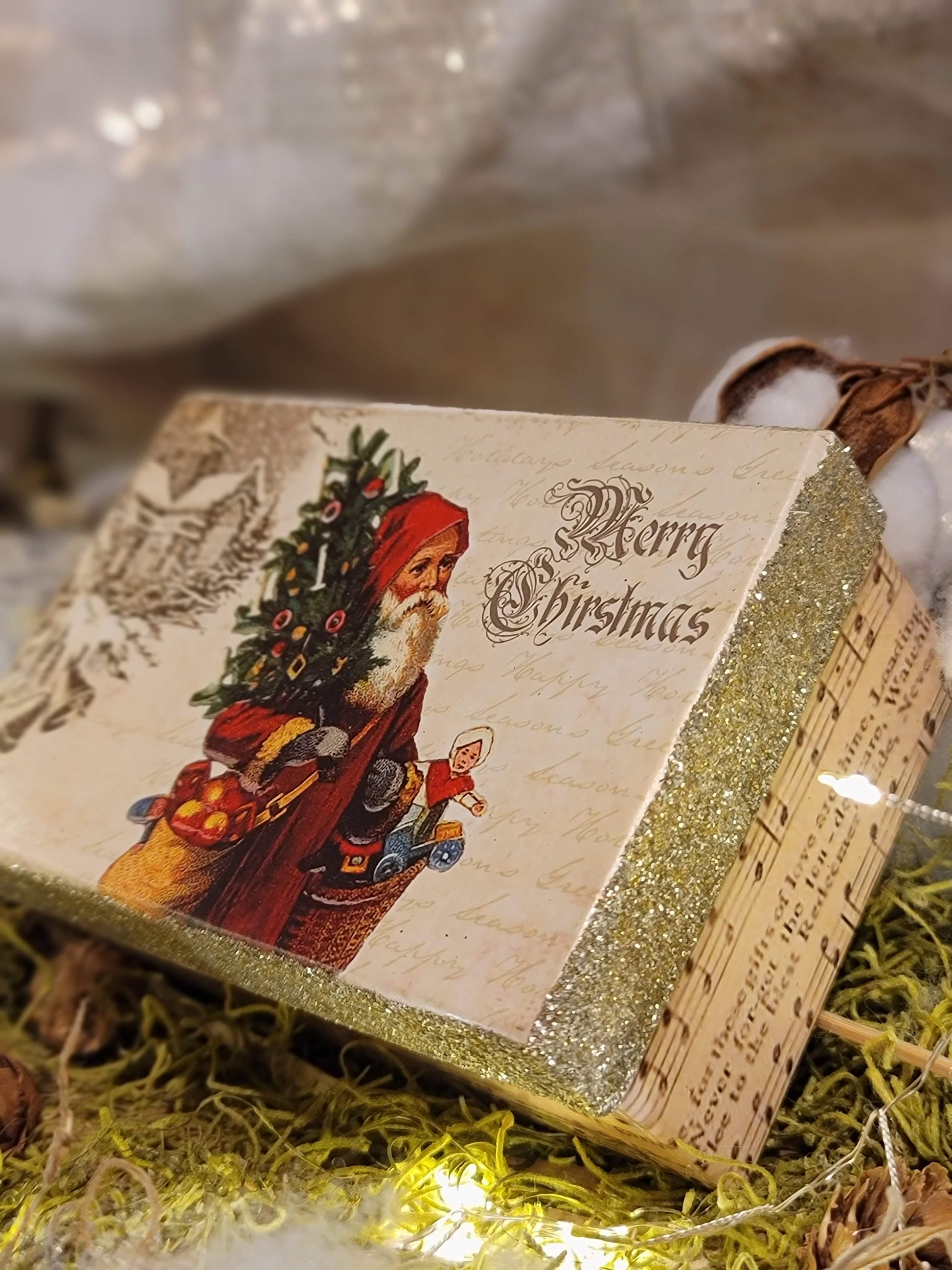 Vintage Victorian Christmas Santa Style Glittered Box Container