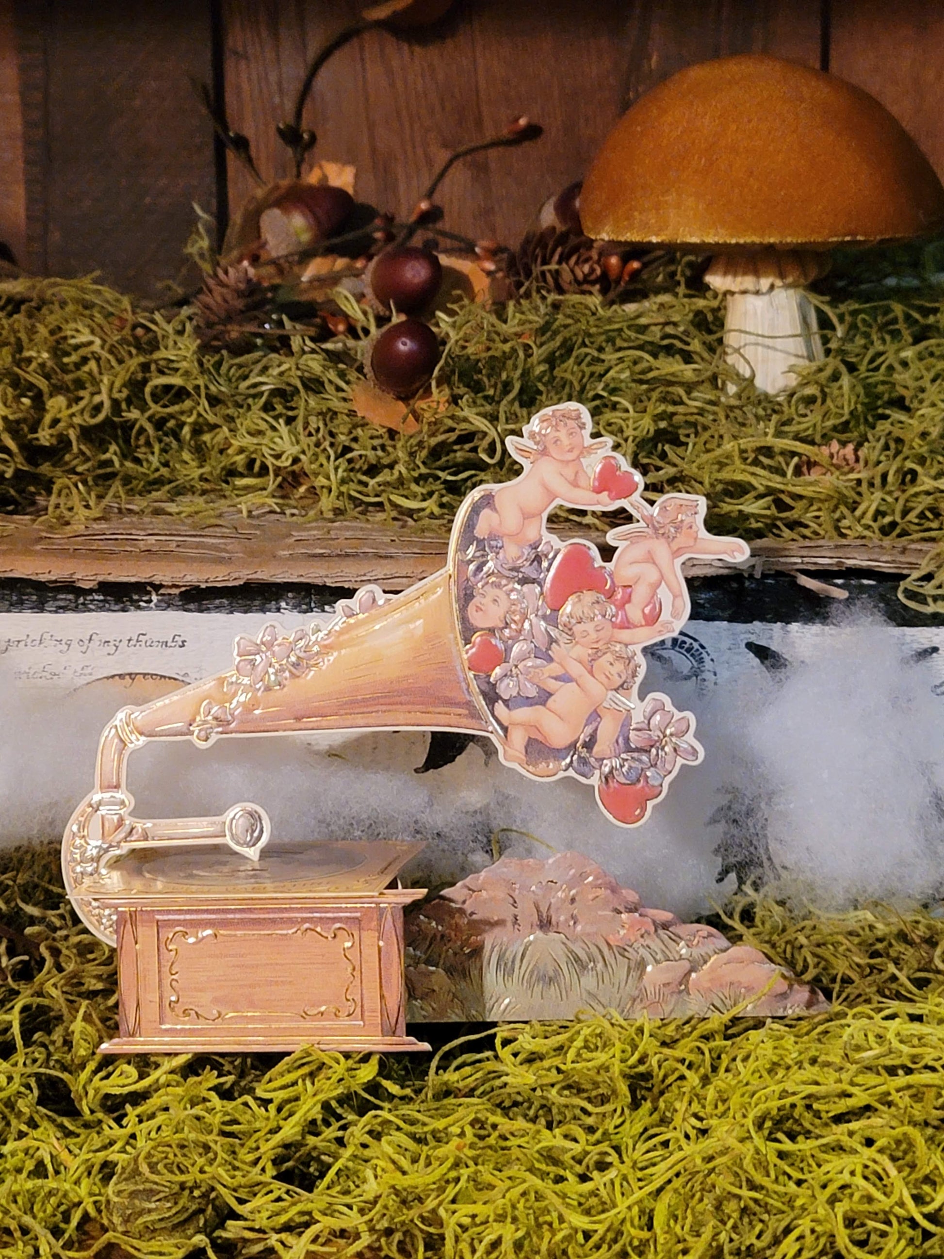 Vintage Victorian Style Cupids Gramaphone 3D Anniversary Proposal Marriage Love Card